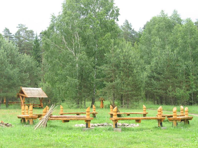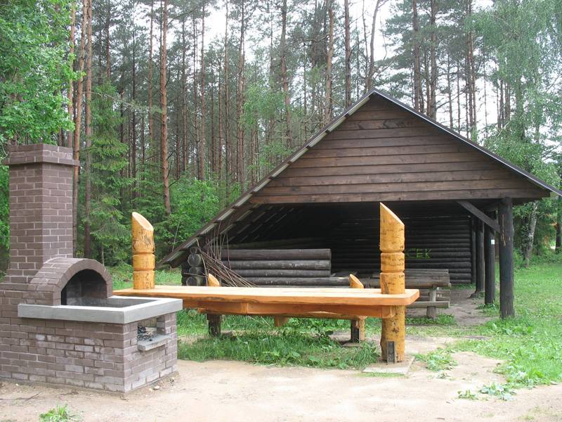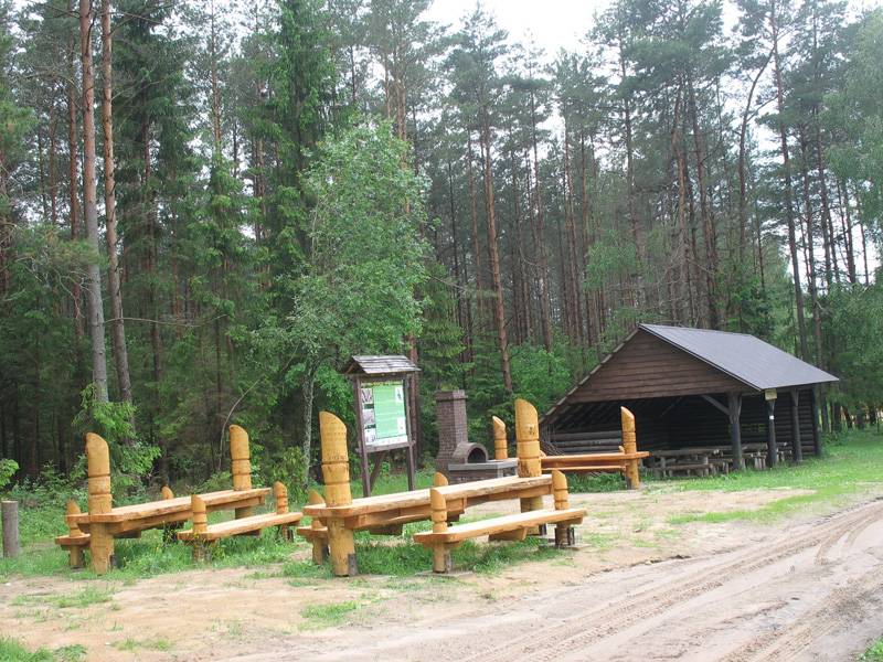 Wiata znajduje się na dawnej składnicy drewna kolejki wąskotorowej o rostawie torów 600 mm.